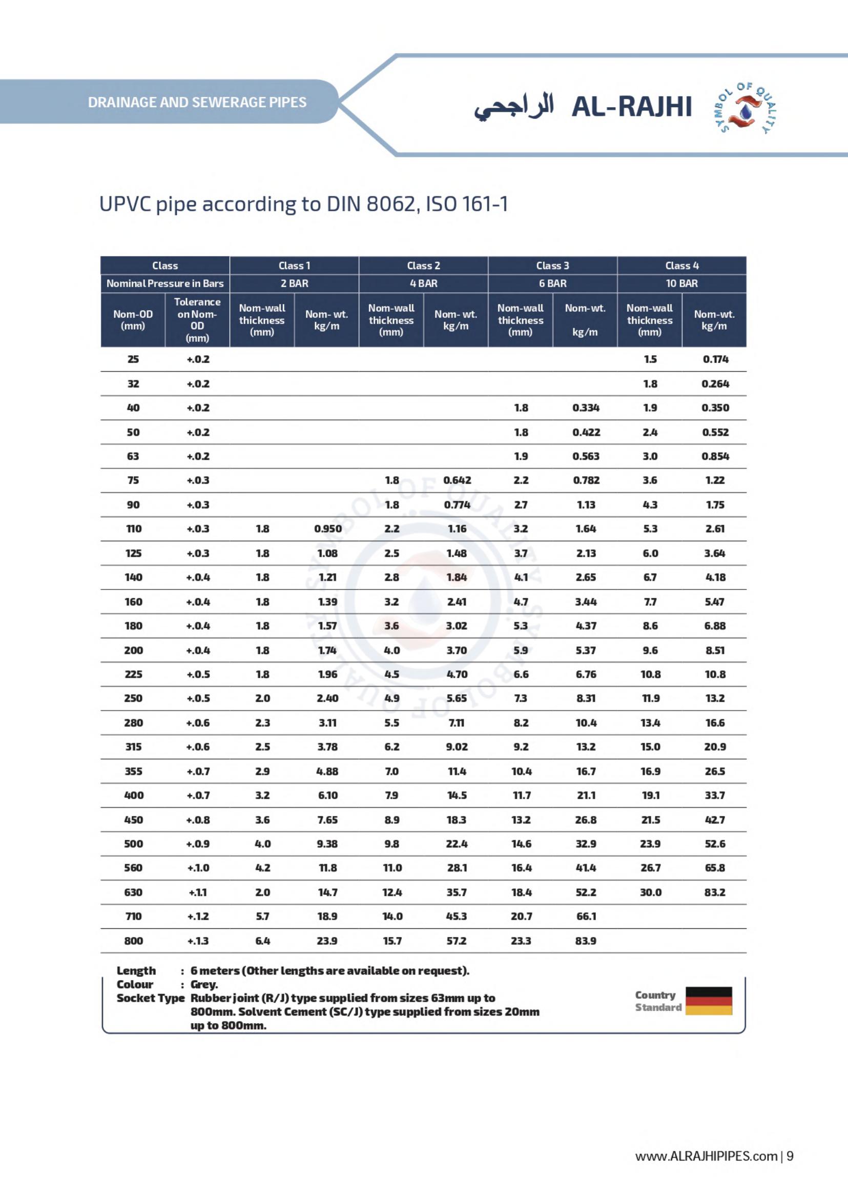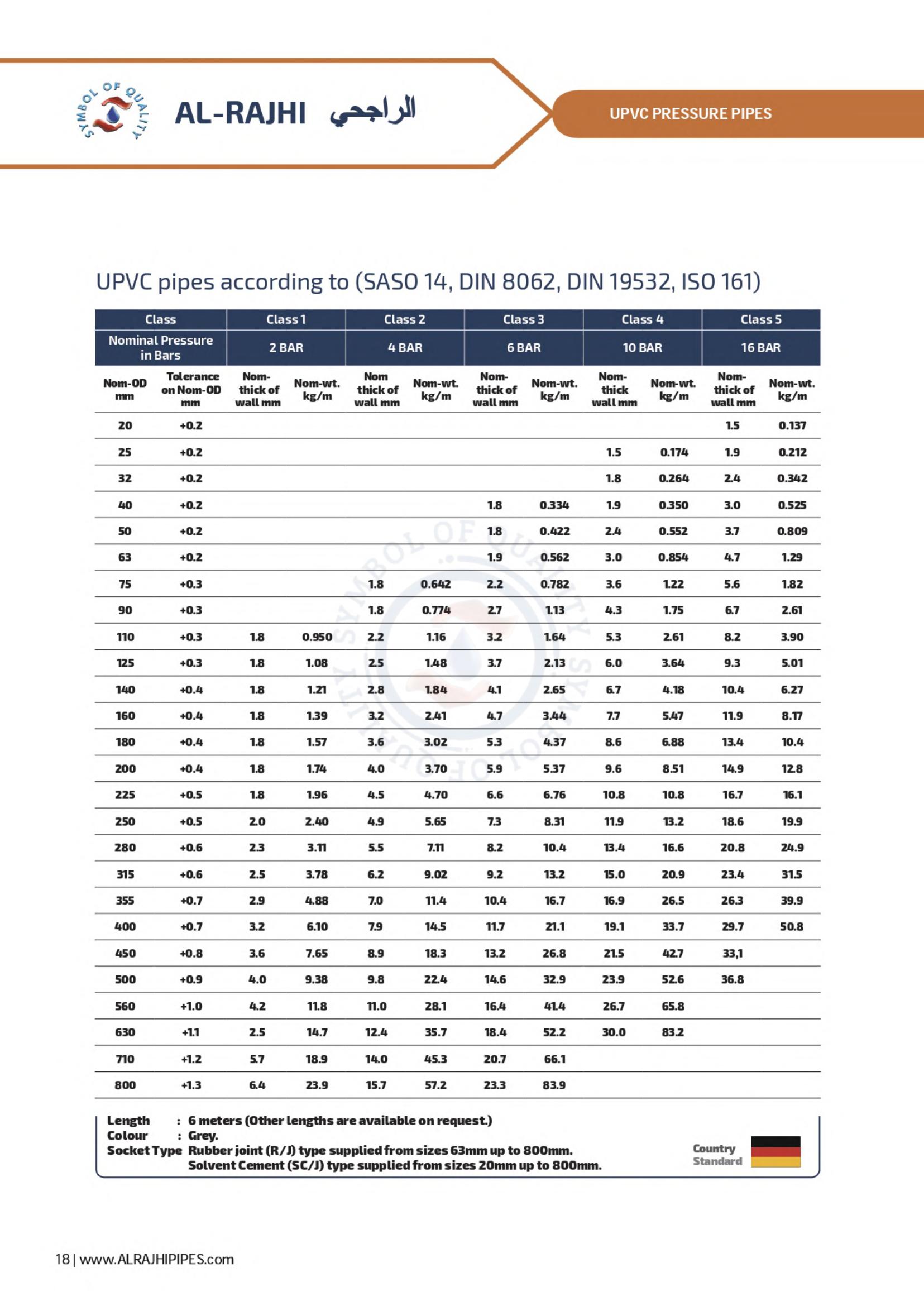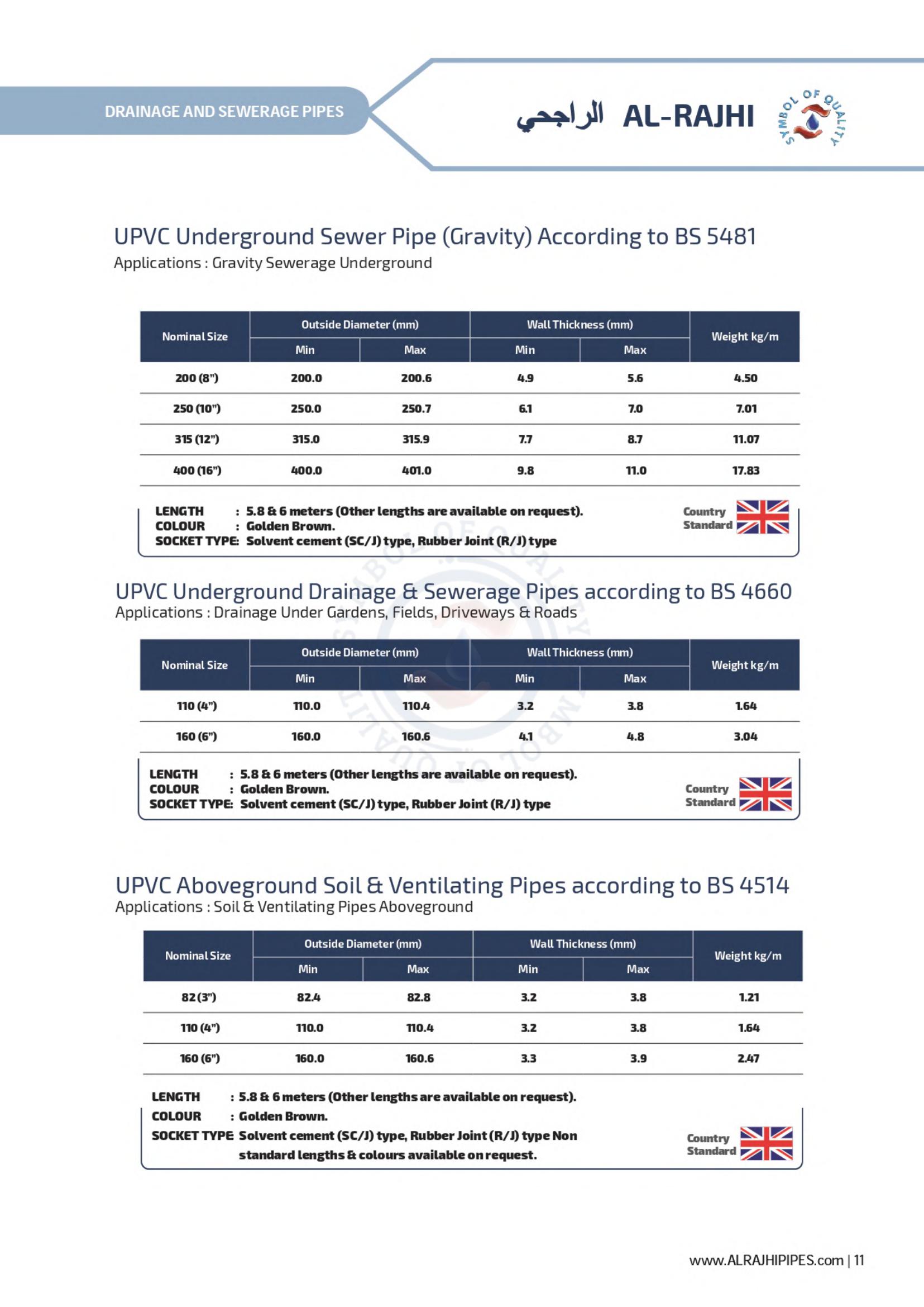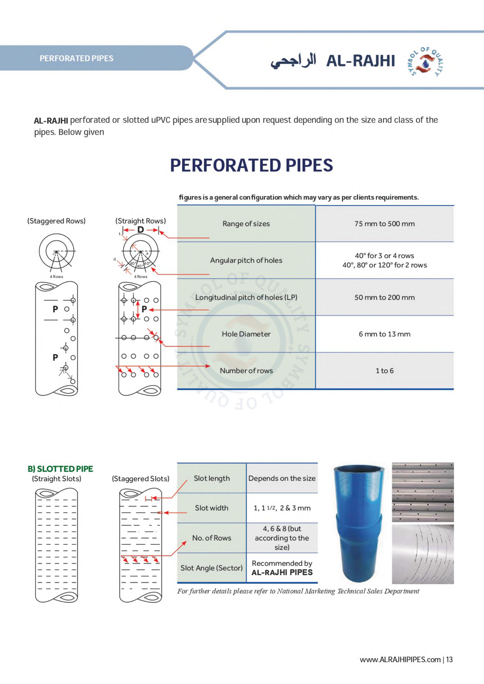 Waste line for corrosive gases, ventilation for office buildings and factories; drainage systems for private homes and elevated highways - these are a few of the many possibilities for AL-RAJHI uPVC pipes. A full line of uPVC fittings is available to assure easy installation.
