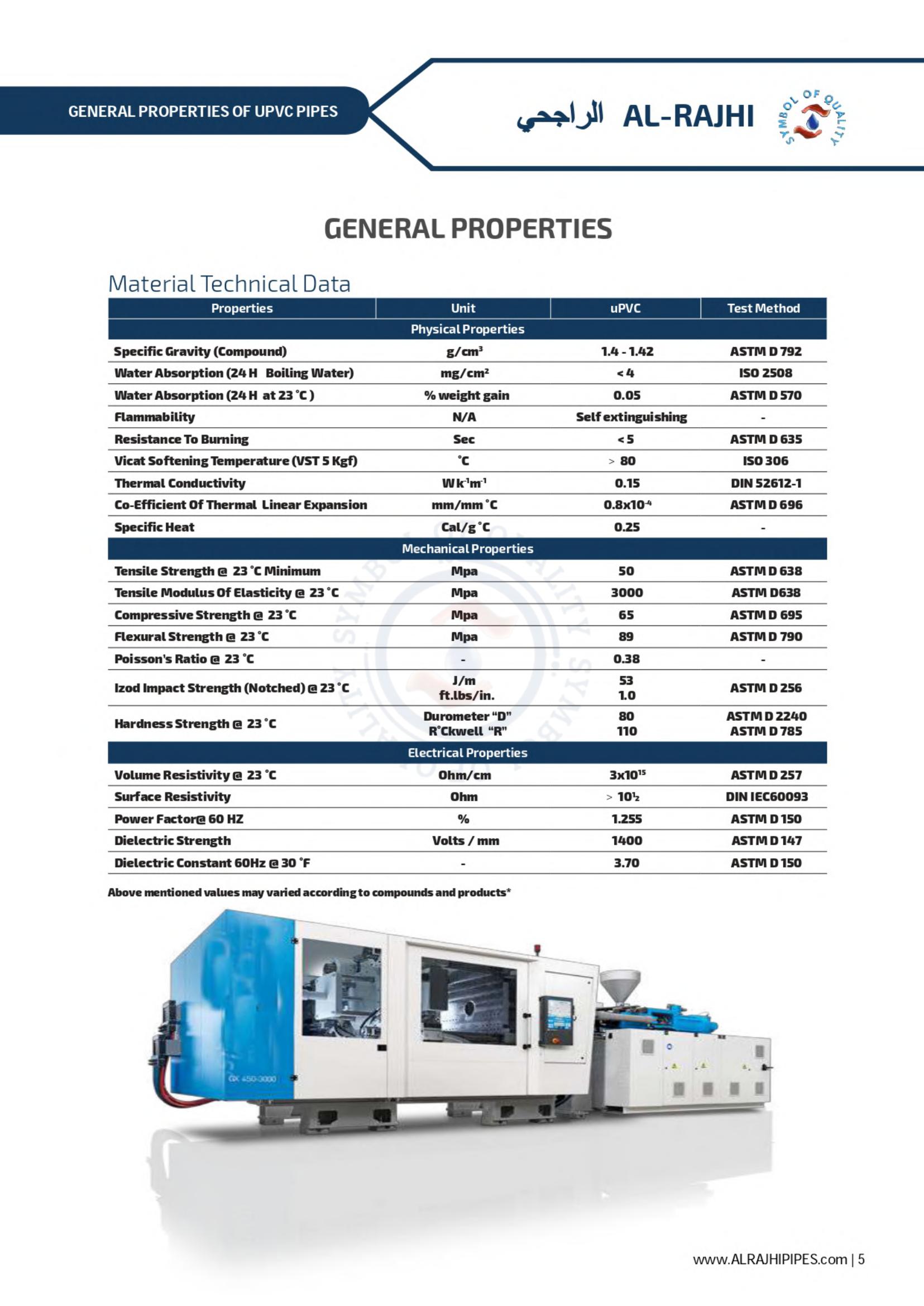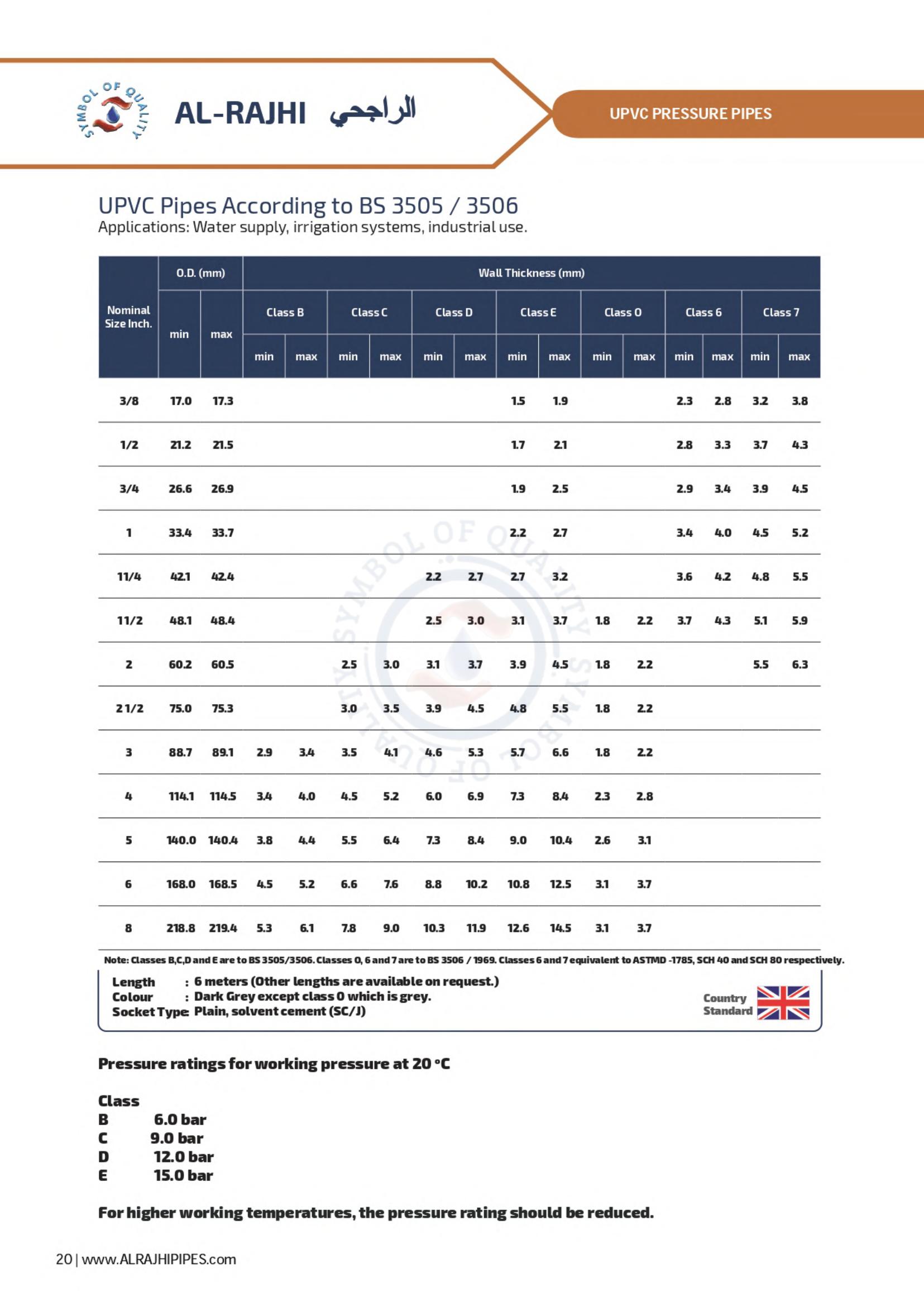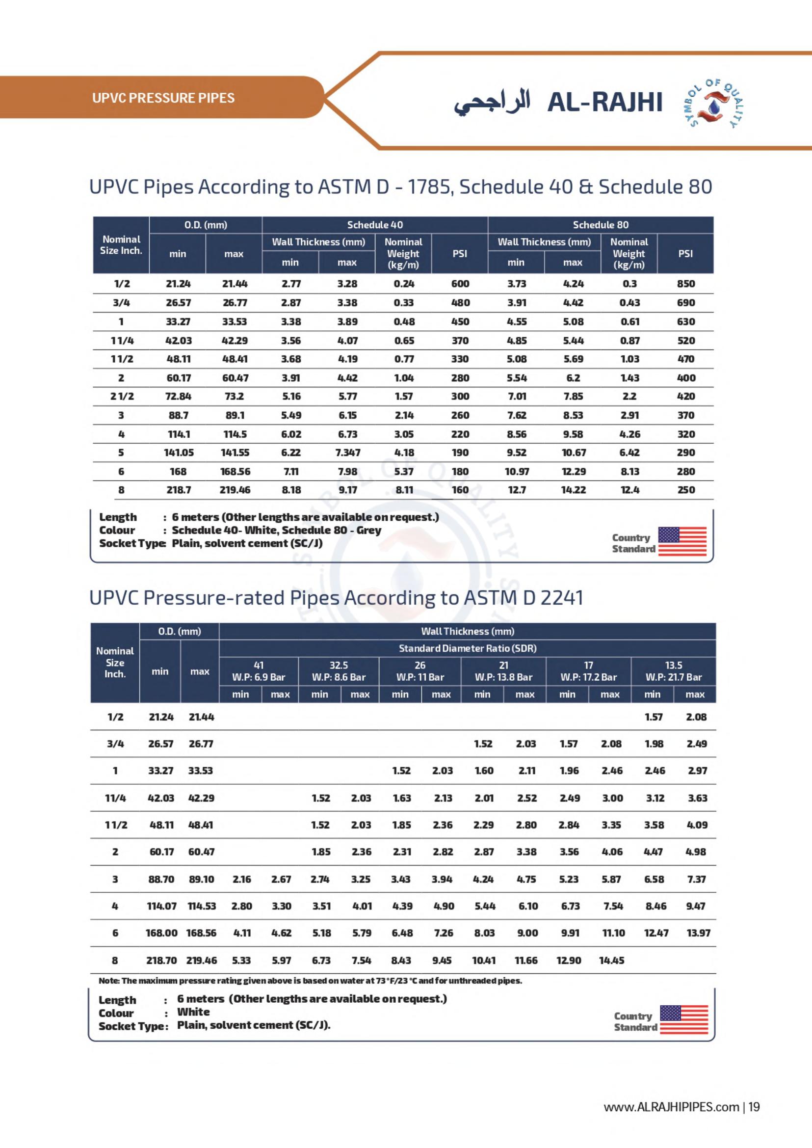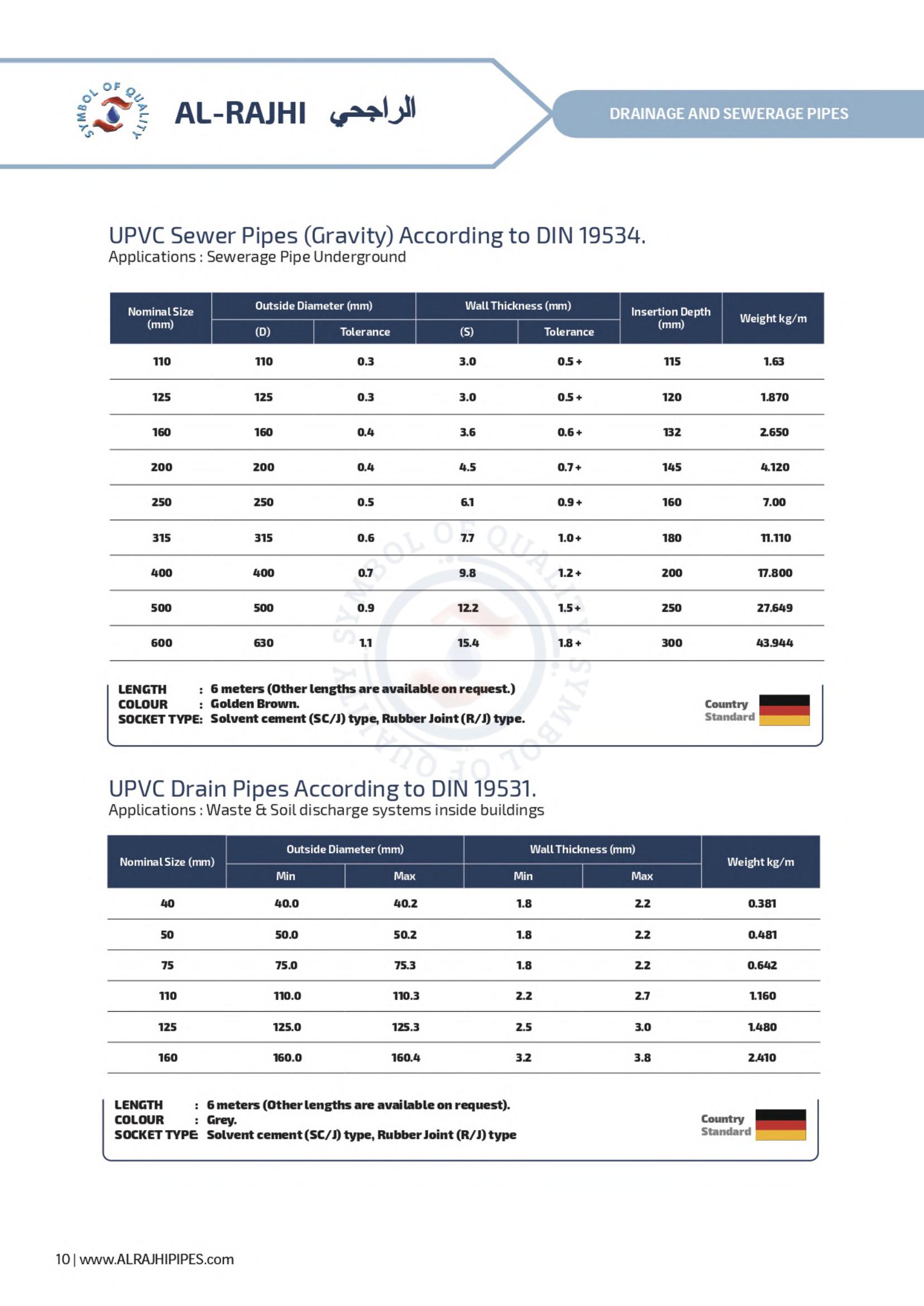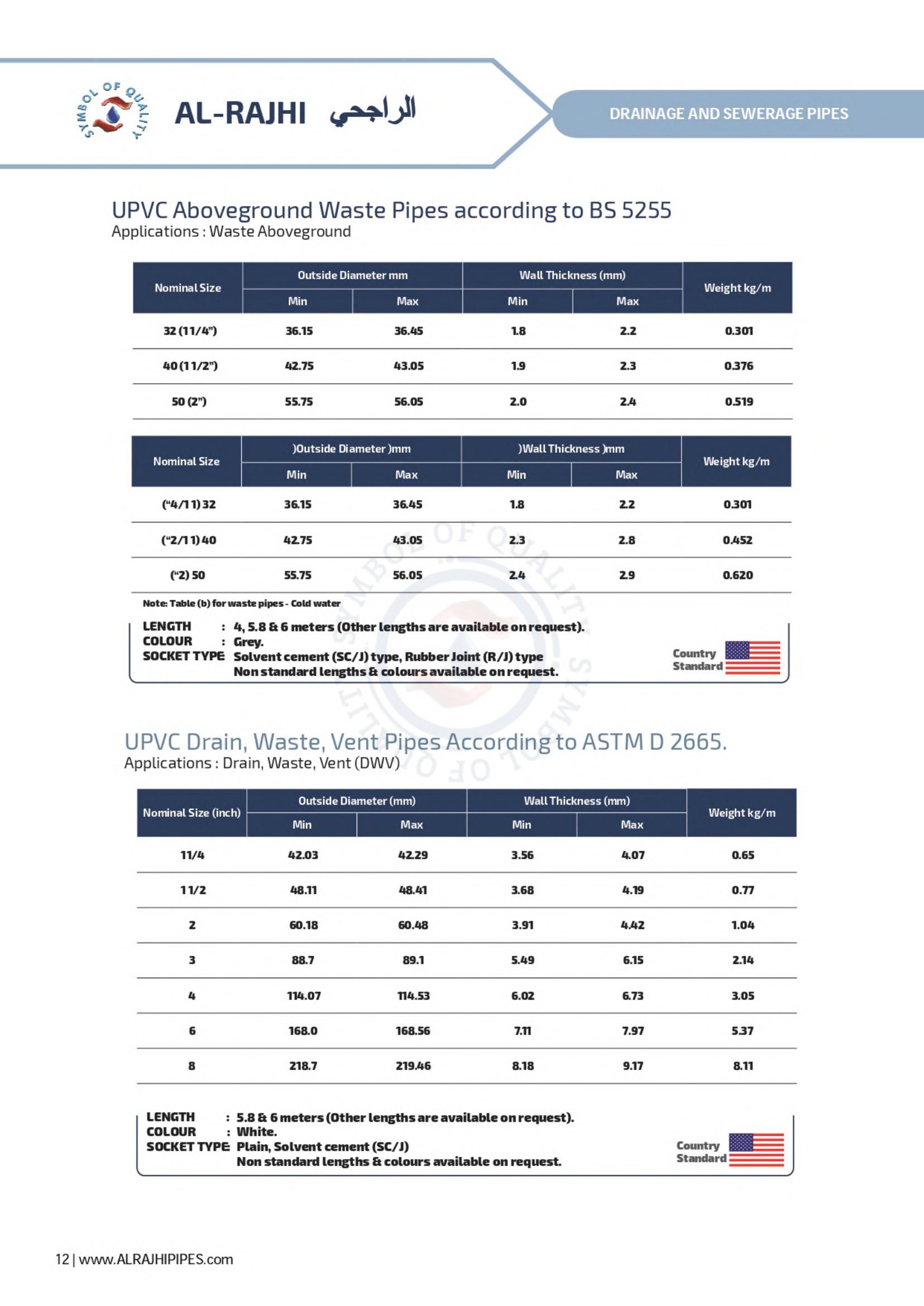 Waste line for corrosive gases, ventilation for office buildings and factories; drainage systems for private homes and elevated highways - these are a few of the many possibilities for AL-RAJHI uPVC pipes. A full line of uPVC fittings is available to assure easy installation.